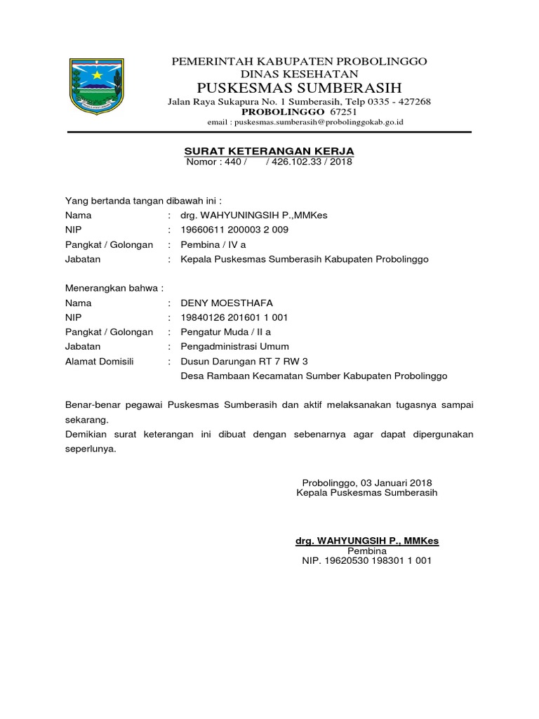 Contoh Surat Pernyataan Kerja Puskesmas - Surat Keterangan Kerja Docx / Surat pernyataan merupakan salah satu surat yang umum digunakan untuk berbagai macam hal.. Surat dinasjanuari 30, 2021 18:55. Dalam mengajukan suatu pembiayaan ke lembaga keuangan (misal bank), terkadang kita diminta untuk membuat contoh surat pernyataan penghasilan. Misalnya saja surat pernyataan diri untuk menyatakan kesanggupan kerja, menyatakan belum pernah menikah, menyatakan penyesalan. Surat pernyataan merupakan salah satu surat yang umum digunakan untuk berbagai macam hal. Seperti apa contoh surat pernyataan yang benar?